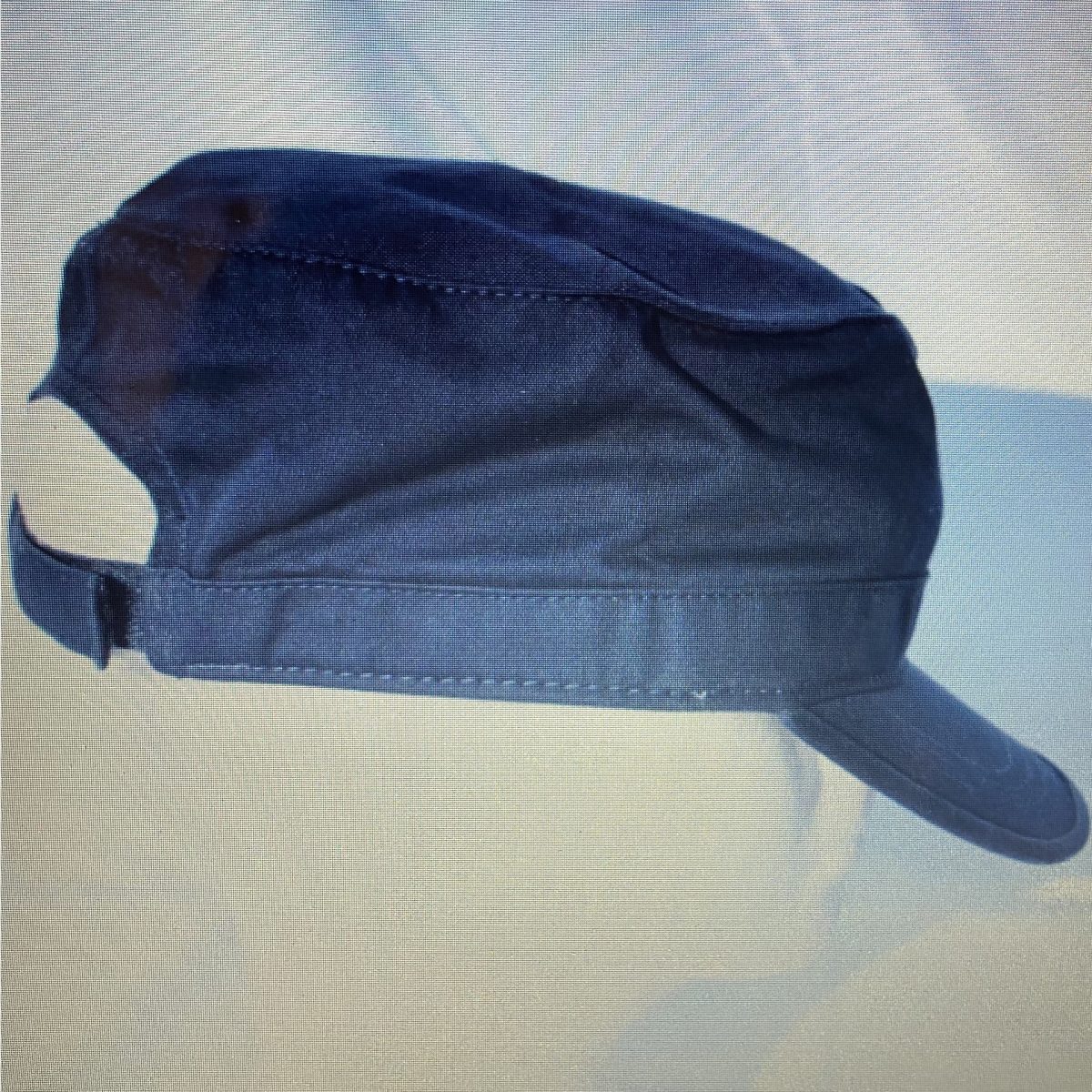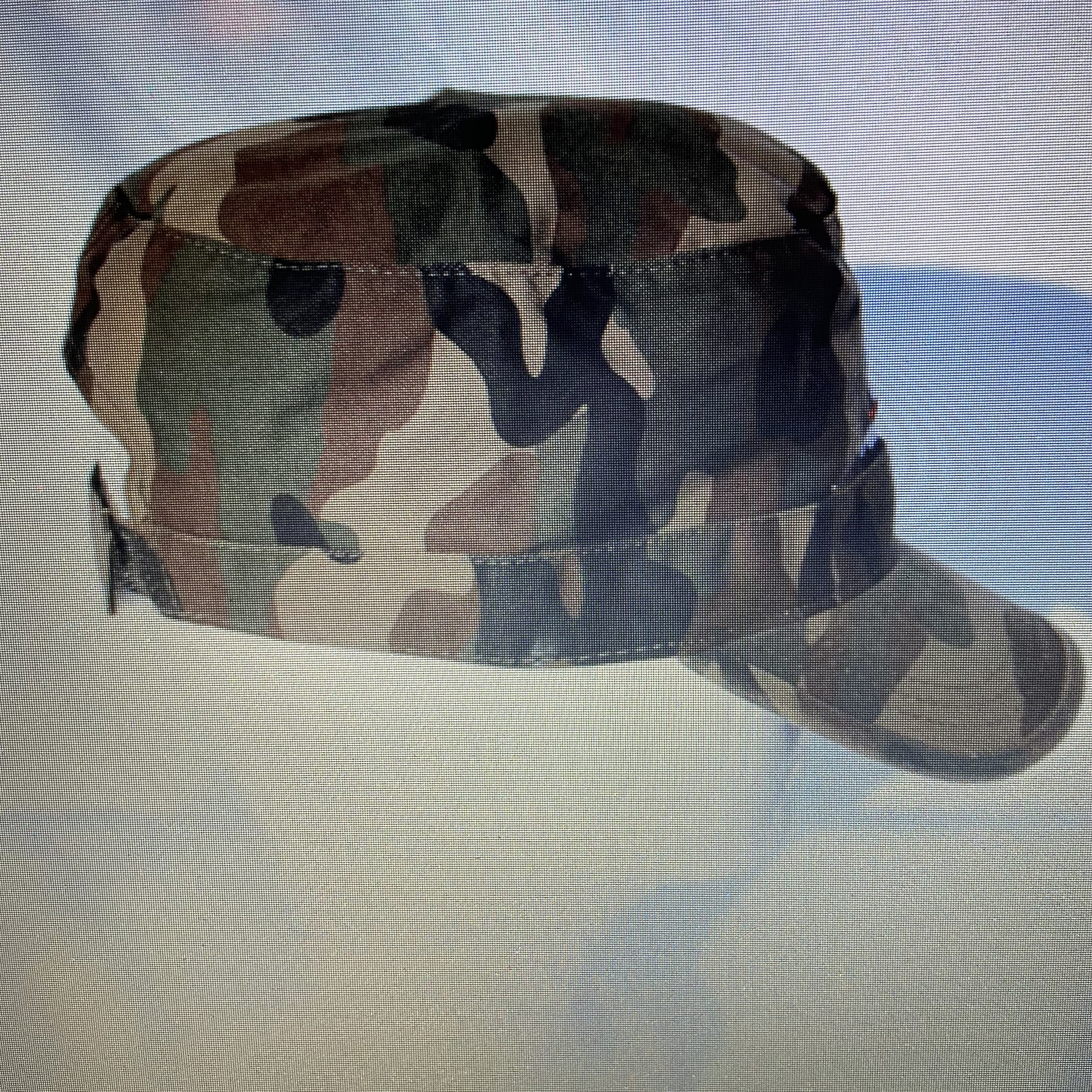 This Vintage G.I. cap is military inspired, with a flat top, and adjustable strap closure.